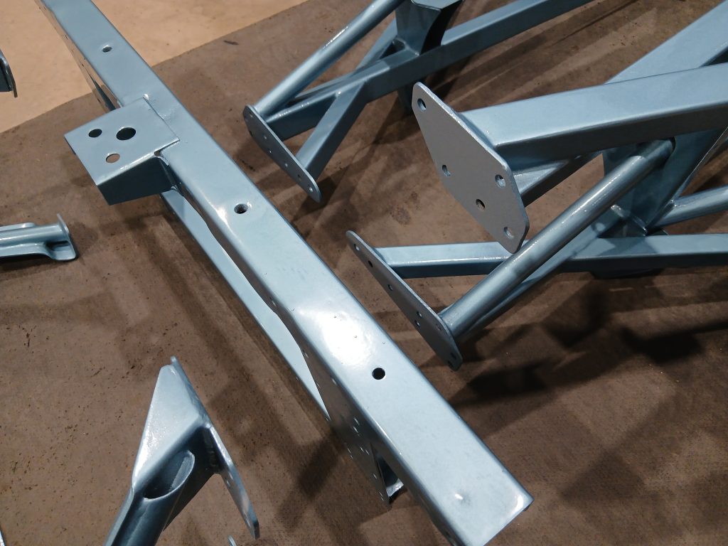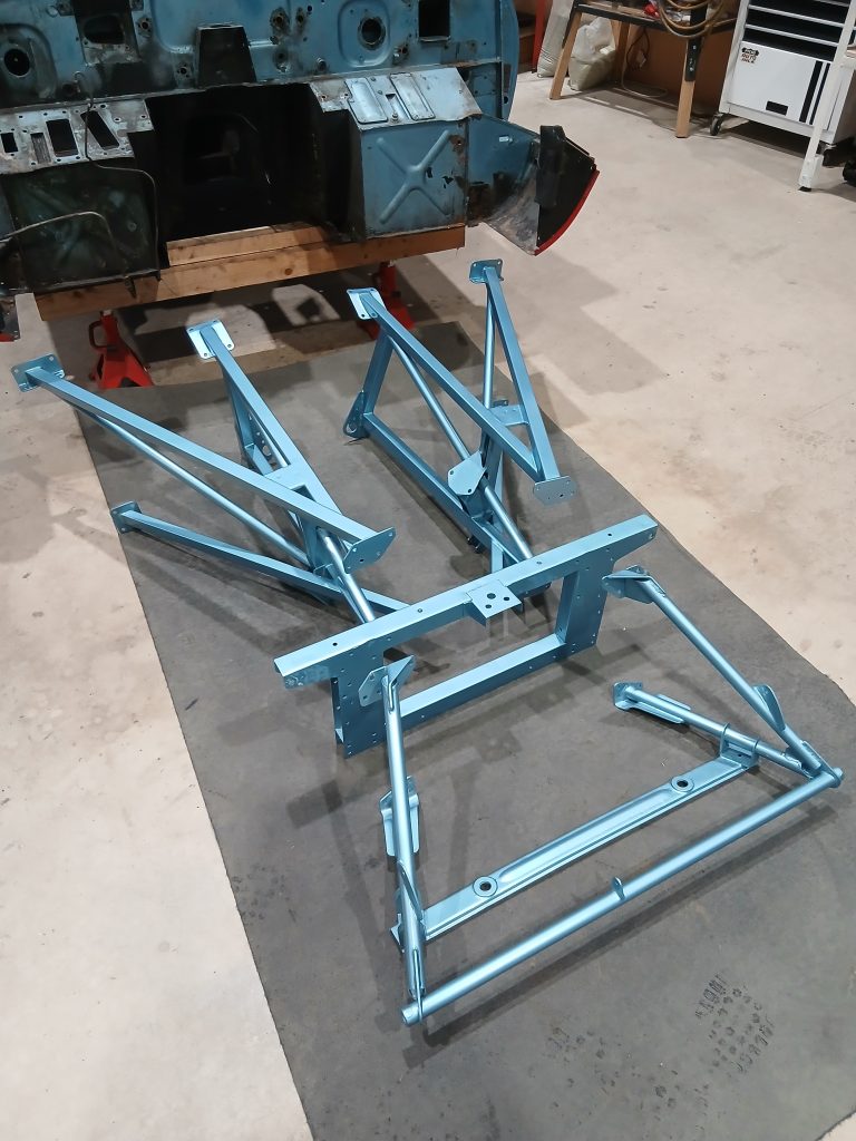Now that this has been done, we will soon be able to begin the front suspension re- assembly. Whilst the frame was away all of the suspension parts have been stripped, blasted and repainted.