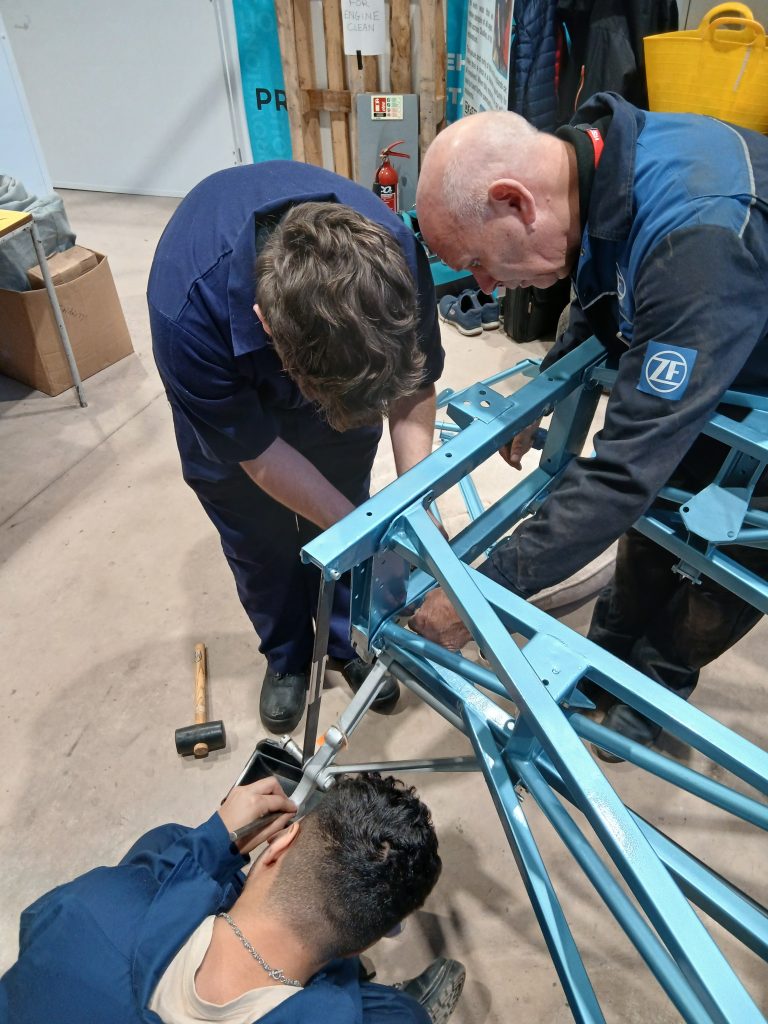 Everyone involved, students and volunteer team alike, have really enjoyed this task. But, what a jigsaw puzzel it has been finding the right locations for each nut and bolt! Whilst the bolts are nearly all the same nut and thread size, they are in four different lengths, ranging from 2 1/2 inch to 4 inch. Each bolt having a specific location. We had carefully bagged and labelled everything when we originally removed them, but there was still plenty of head scratching, trial and error involved.