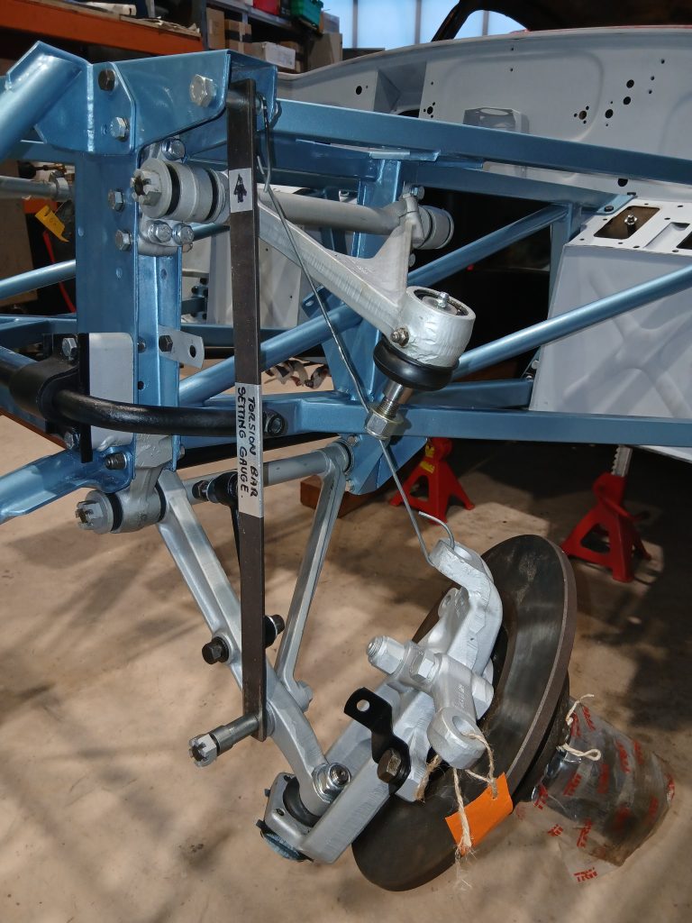 The new year has seen a focus on the front suspension. The plan was to get the car back on four wheels, to enable it to be manoeuvrable. This is important as the next milestone ahead of us is the bodyshell respray. Moving a bodyshell without wheels is much more difficult and requires extra money spent on wheeled frames etc.